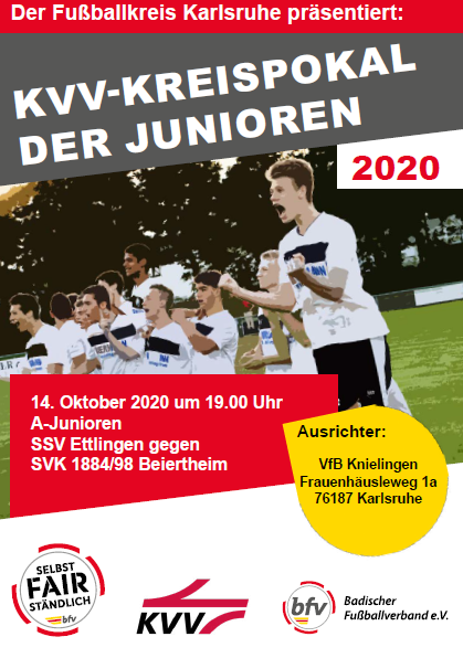 Unsere A1 steht am kommenden Mittwoch, den 14. Oktober um 19 Uhr im Pokalfinale gegen den SSV Ettlingen. Ausrichter ist der VfB Knielingen. Wir drücken unserem Team sämtliche Daumen und freuen uns auf zahlreiche Unterstützer.