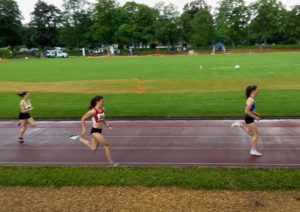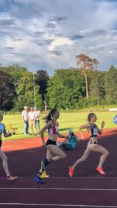 Für mich ging es im 18:58 im C-Lauf über 800m an den Start. Das gut aufgestellte Feld sollte durch Maren Guthier als Pace angeführt werden. Hoch motiviert wurden die ersten 200m in 30 Sekunden absolviert, ich direkt hinter der Pace. Drauf folgte eine 34er Zeit, sodass die die ersten 400m in geplanten 64 Sekunden abgespult werden konnten. Mir machten die schnellen ersten 200m sehr zu schaffen. Noch bis ca. 600m schaffte ich es, das Feld nach dem Ausscheiden der Pace anzuführen, dann musste ich leider nach und nach die Läuferinnen an mir vorbeiziehen lassen und mich ins Ziel kämpfen. Mit meiner Zielzeit von 2:14,71 bin ich sehr zufrieden und habe damit auch die Norm für die deutschen Junioren Meisterschaften unterboten.