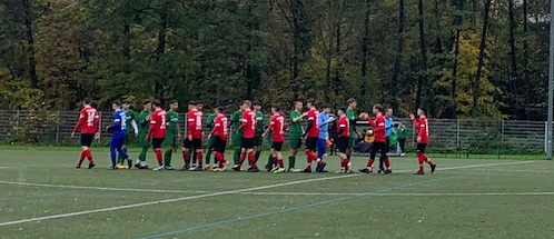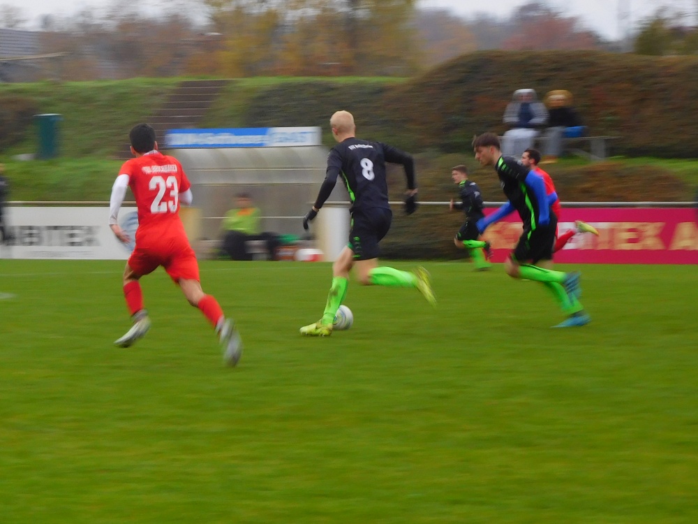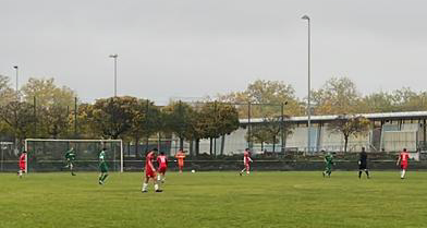 Die mit etwas modifizierter Aufstellung aufwartenden Gäste fanden dann sogar ganz gut ins Match und zeigten in den Anfangsminuten mehrfach ansehnliche Passstafetten, die zumindest mal bis in die Nähe des gegnerischen Sechzehners reichten. Es dauerte etwas, bis der Tabellenführer erstmals gefährlich vor dem Gehäuse der Schwarzgrünen auftauchte; der dann zuletzt fast schon obligatorische Gegentreffer fiel diesmal aber nicht – Glück für den SVK, dass der Angreifer etwas wegrutschte. Einige Minuten später leisteten sich die Hausherren einen seltenen Abspielfehler im Spielaufbau, Beiertheim konterte sehenswert und nicht ungefährlich und verschaffte sich trotz des ausbleibenden Torerfolgs vielleicht etwas Respekt; das ganz große Risiko ging die Heimmannschaft in der Folge jedenfalls trotz höherer Ballbesitzquote nicht. Das Unentschieden zur Pause war leistungsgerecht.