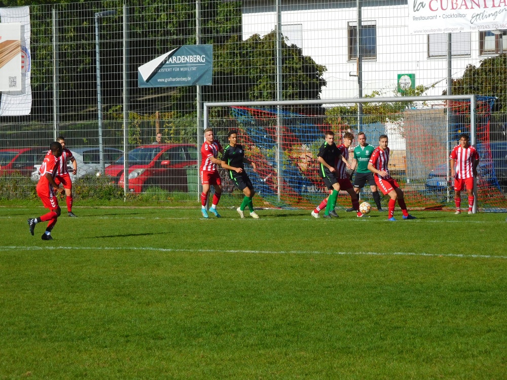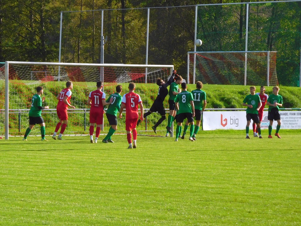 In der Anfangsviertelstunde neutralisierten sich beide Kontrahenten im Mittelfeld. Die körperliche Überlegenheit des FC machte der SVK mit schnellem Kurzpassspiel wett, in Richtung Strafräume gab es aber zunächst kaum ein Durchkommen. Dann erhöhten die Walzbachtaler Druck und Tempo, verlagerten das Geschehen etwas in Richtung des Gästetores, wirkten bei Gegenstößen aber keineswegs unverwundbar. So kam das Auswärtsteam Mitte der ersten Halbzeit zu ersten Halbchancen, fand aber keine Mittel, daraus Zählbares zu generieren. Die Platzherren machten es besser, wurden mittels verheerendem Ballverlust rechts außen aber auch herzlich zum Führungstreffer eingeladen.
