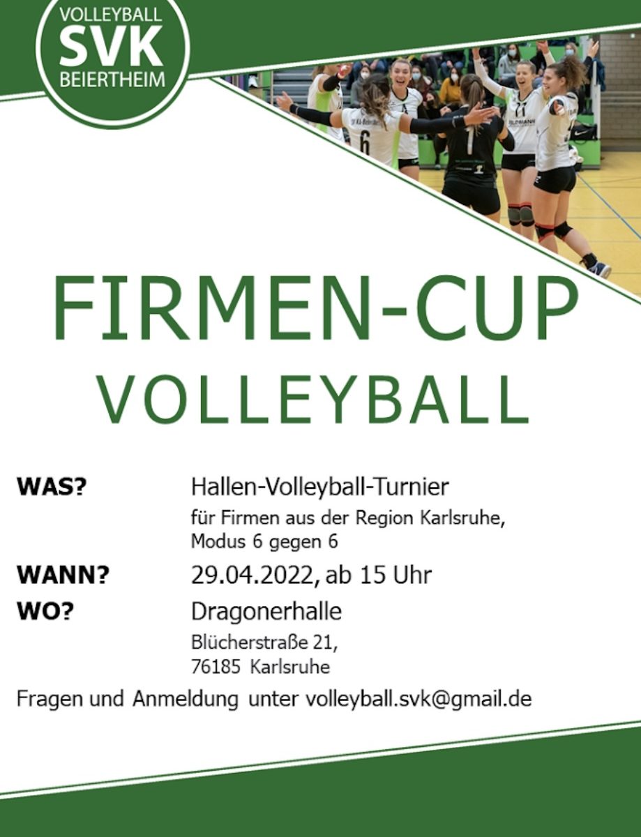 wir vom SVK- Beiertheim wollen Sie zu unserem ersten Hallenvolleyball-Firmencup einladen. Sie haben die Möglichkeit, ein oder mehrere Teams -aus Ihren Mitarbeitern bestehend- anzumelden. Außerdem haben Sie die Chance, sich mit anderen Firmen zu messen und den Tag zum Austausch zu nutzen. Die Halle bietet auch Platz für Zuschauer, daher sind Familien und Freunde auch herzlich eingeladen. „Firmen Cup Halle“ weiterlesen