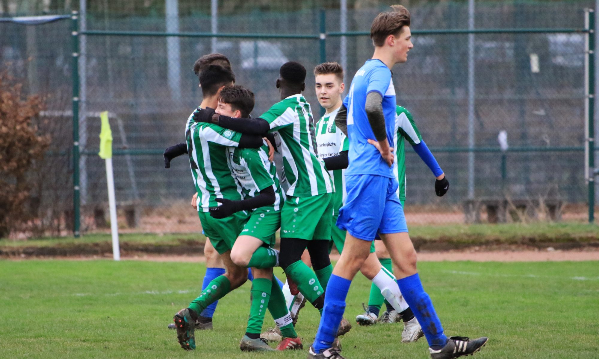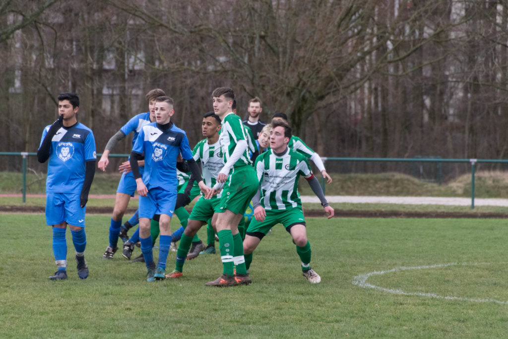 Erfreulich für die Jungs: Es ging eine Woche früher los. Weniger erfreulich: Das Spiel begann und das Team in Grün war die erste Halbzeit noch im Winterschlaf. Es fehlte an Emotionen und Einsatz! Die Heimmannschaft in Blau ging in der 26. Minute mit 1:0 in Führung. Kurz vor dem Pausenpfiff (40. Min) glich der SVK zum 1:1 aus. Es wurde an den o. g. fehlenden Attributen in der Pausenbesprechung gearbeitet. Neu motiviert wurde die zweite Hälfte engagiert angegangen. Der Ball wurde mit Tempo nach vorne gespielt und der Gast kam zu Abschlüssen. Wieder führten eigene Fehler dazu, das in der 47. Minute der PSK mit 2:1 wieder in Führung ging, aber in der 55. Minute erzielte der SVK den Ausgleich (2:2). Nun blieb das Spiel spannend! Drei Minuten später (58. Min.) erneut ein Tor für die Beiertheimer (2:3). Dieses Tor schien ein kleiner Weckruf für die Grünen zu sein, denn sie waren danach wieder die bessere Mannschaft. In der 73. Minute klingelte es dann wiederum in dem Maschen (2:4) von der Post. Es bannte sich ein Schlagabtausch an, in dem der PSK in der 75. Minute den Anschlusstreffer zum 3:4 schoss. Ein Abbild der ersten Hälfte: Fast pünktlich zu Abpfiff machte der SVK Beiertheim mit dem 3:5 (80. Min.) den Deckel drauf.