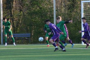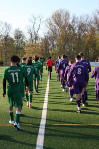 Die B2 trat am vergangenen Mittwoch zum Halbfinale des Kreispokals in Durlach Aue an. Auf feinem Kunstrasen entwickelte sich ein ausgeglichenes Spiel, in dem die Gäste in grün zwar mehr Ballbesitz, die Auemer jedoch zunächst mehr Torannäherungen verzeichneten. Nach einer guten Viertelstunde übernahm Beiertheim dann zunehmend die Spielkontrolle und erzielte folgerichtig das 0:1 durch seinen Linksaußen, der den herauseilenden Keeper überwand. Mit der Führung im Rücken ließ Beiertheim nun im Mittelfeld kontrolliert den Ball laufen, kam aber kaum zu nennenswerten Abschlüssen. Auch mehrere Ecken blieben wirkungslos.