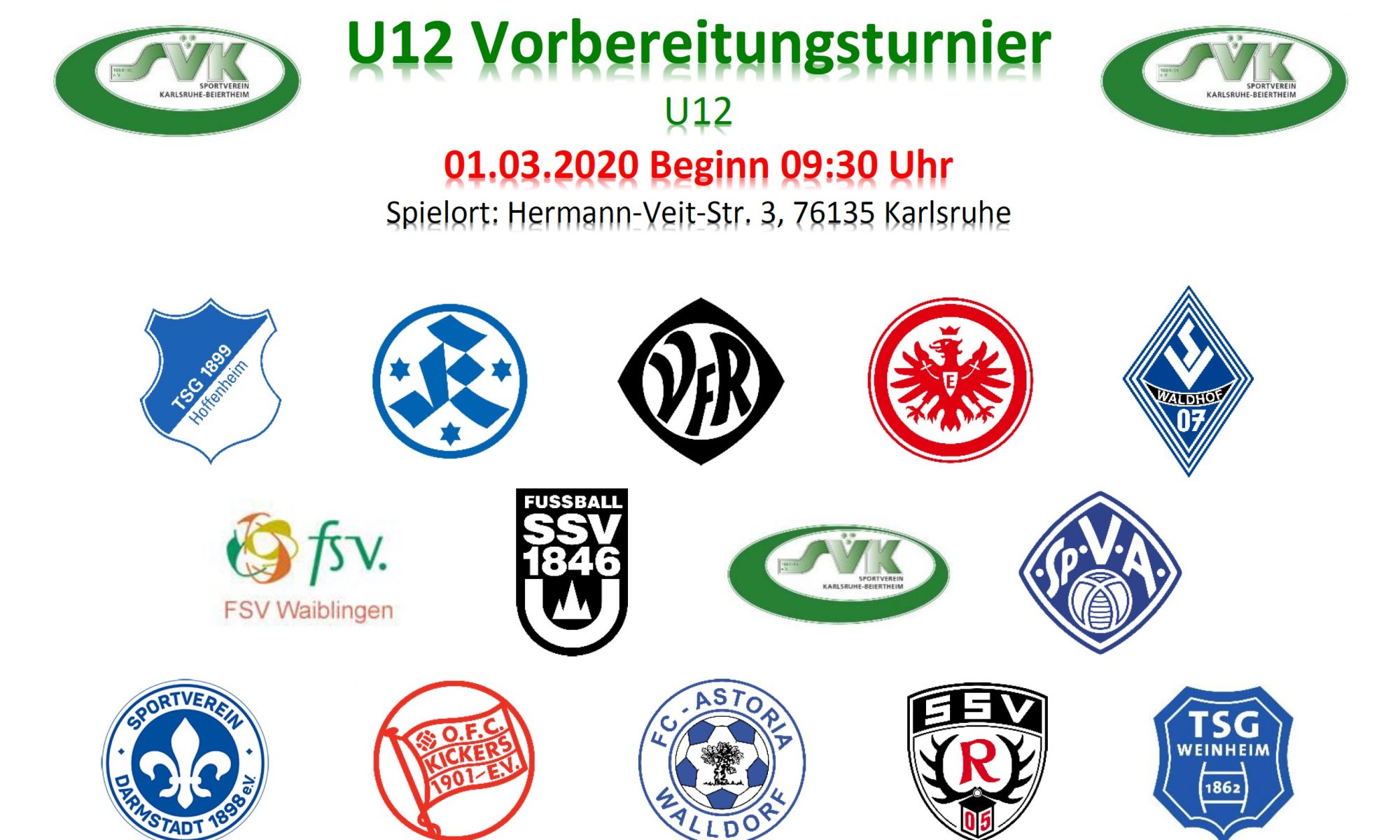Ein hochkarätig besetzes U12-Vorbereitungsturnier veranstaltet der SVK Beiertheim am Sonntag, den 1. März 2020, von 9:30 bis 16:30 Uhr auf dem Vereinsgelände an der Europahalle.