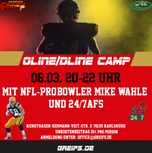Zum zweiten Mal findet das Jakob Johnson Youth Camp in Stuttgart statt. Da darf die Jugend der Badener Greifs selbstverständlich nicht fehlen. Vier aktive Spieler aus der U13/15 haben den Weg durch Wind und Regen gefunden und standen mit Jakob Johnson von den Las Vegas Raiders und dem Coaching Team der Stuttgart Surge fünf Stunden auf dem Spielfeld.