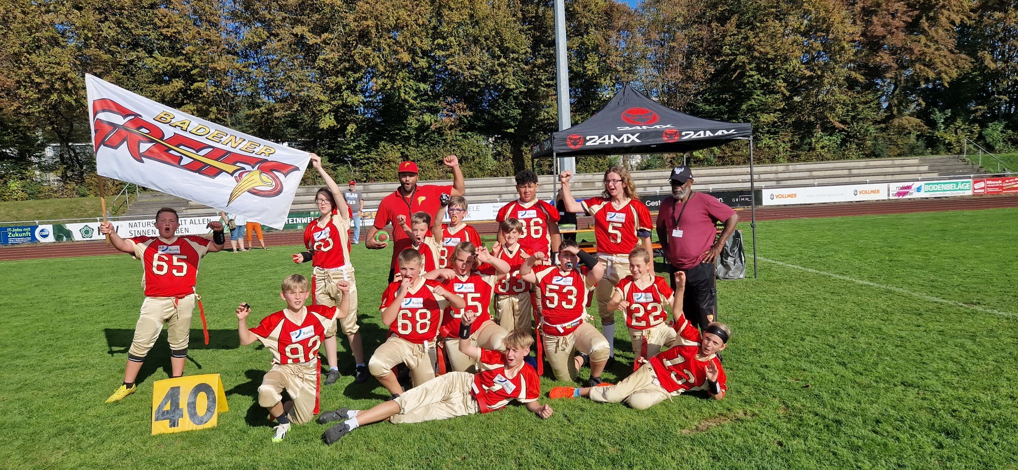 Obwohl das Ergebnis nicht im Sinne der Badener Greifs ausfiel, können sie stolz auf ihre Leistung sein. Sie zeigten Kampfgeist, Teamgeist bis zur letzten Sekunde. Das zweite Spiel folgte direkt anschließend gegen die Heimmannschaft der Beavers. Die jungen Spieler*innen waren weiterhin hochmotiviert und stürzten sich ins Geschehen. Die mitgereisten Fans und die Eltern feuerten die Teams weiter enthusiastisch an. Die Beavers starteten, aber kamen dank unserer starken Defense nicht weit. Nun waren wir