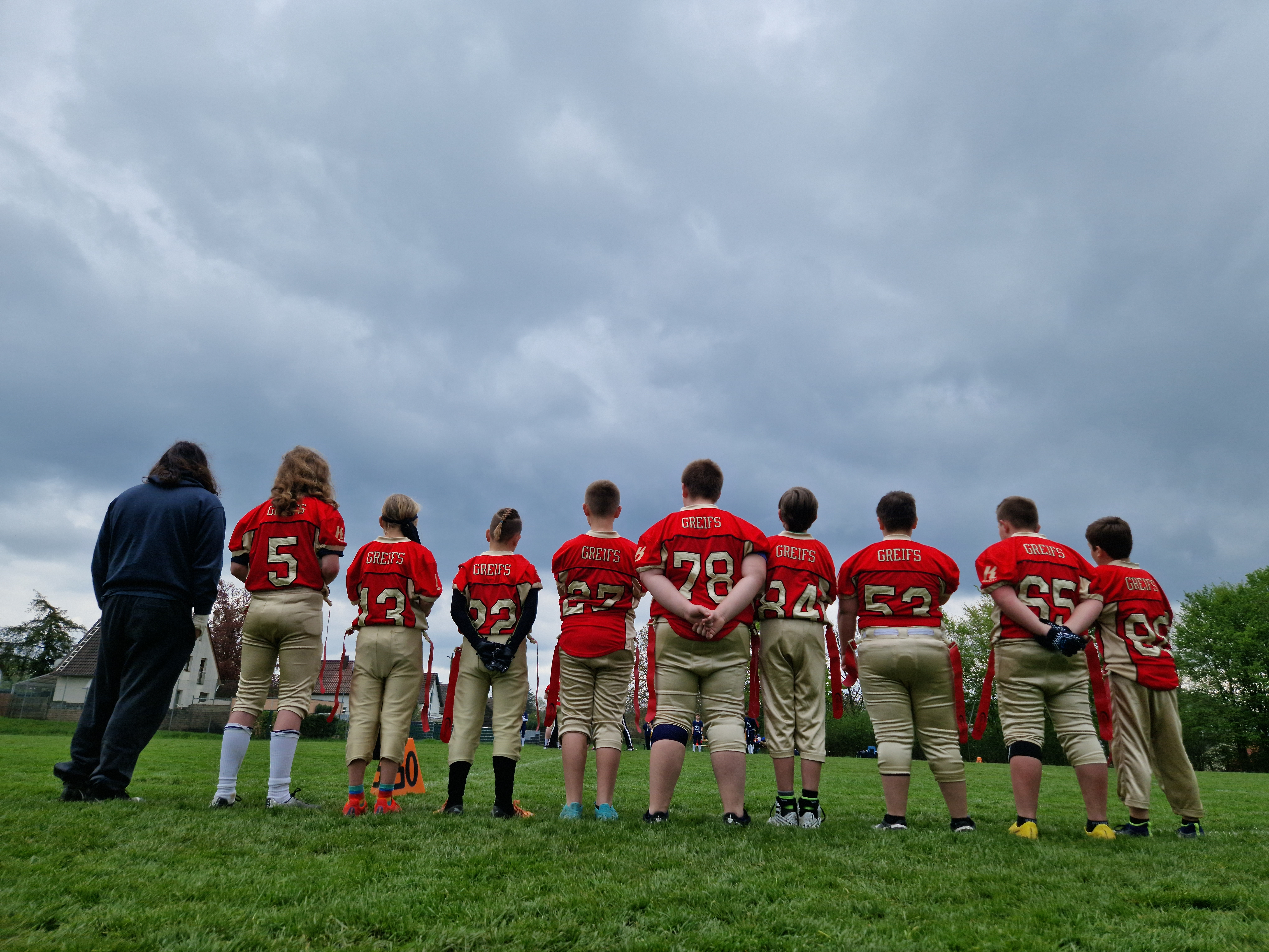 Unseren U13 Junior Greifs gelang es leider über die gesamte Spielzeit nicht, einen eigenen Touchdown zu erzielen, und so endete das Spiel mit einem knappen 6-0-Sieg für die Herrenberg Raptors. Besonders zu erwähnen ist der Kampfgeist unserer U13. In den letzten