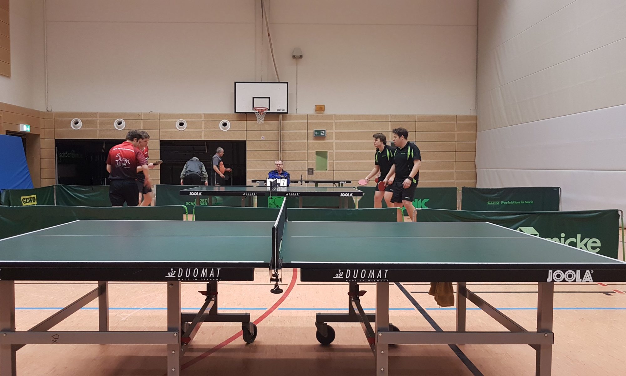 Nachdem Gestern die 2te bereits die Relegation nach oben besiegelt hatte, ging es heute mit der 3ten nach Stutensee-Staffort. Ersatzverstärkt mit Thomas und mir. Das warf bereits Rätsel in den Doppeln auf, die wir aber schnell lösten.