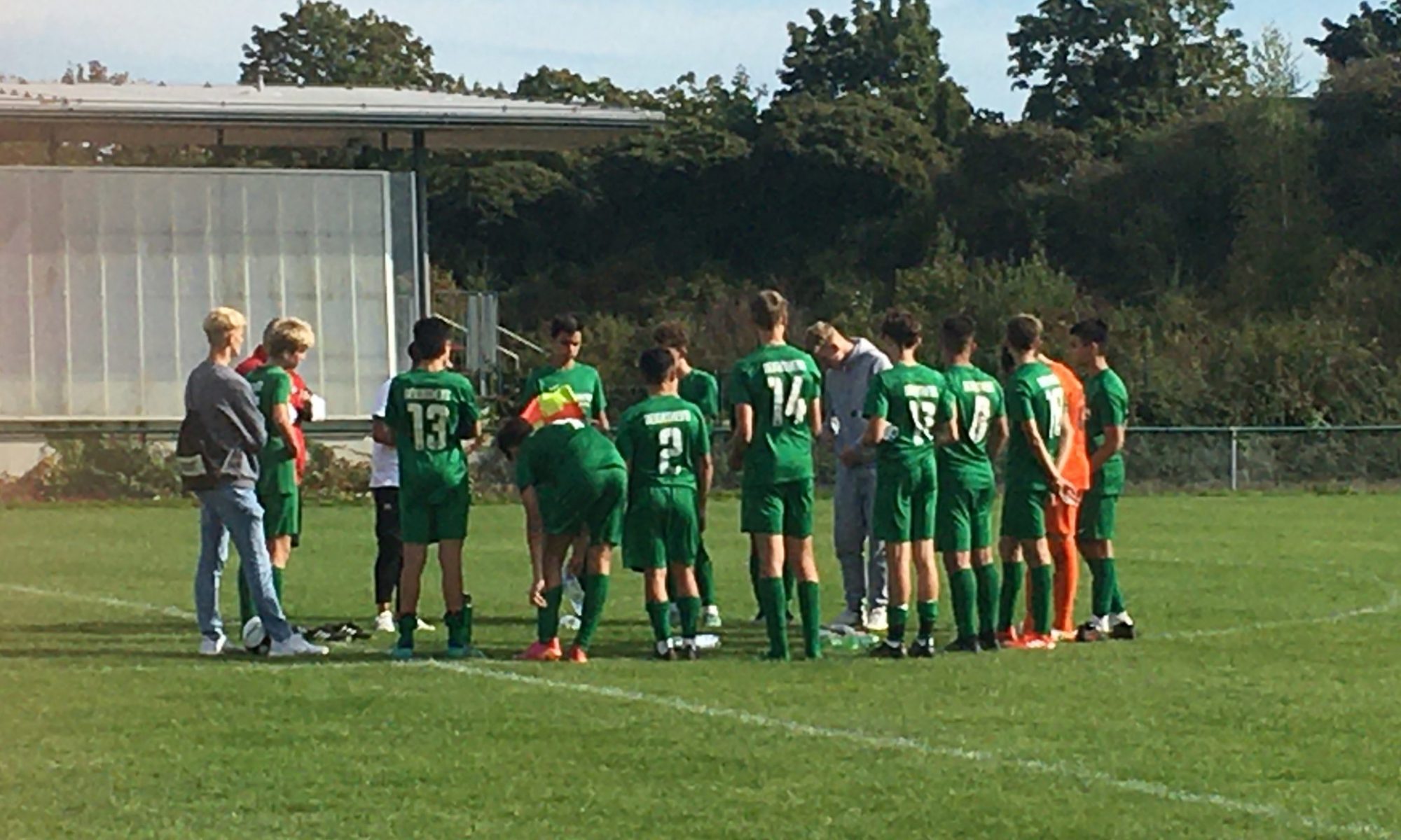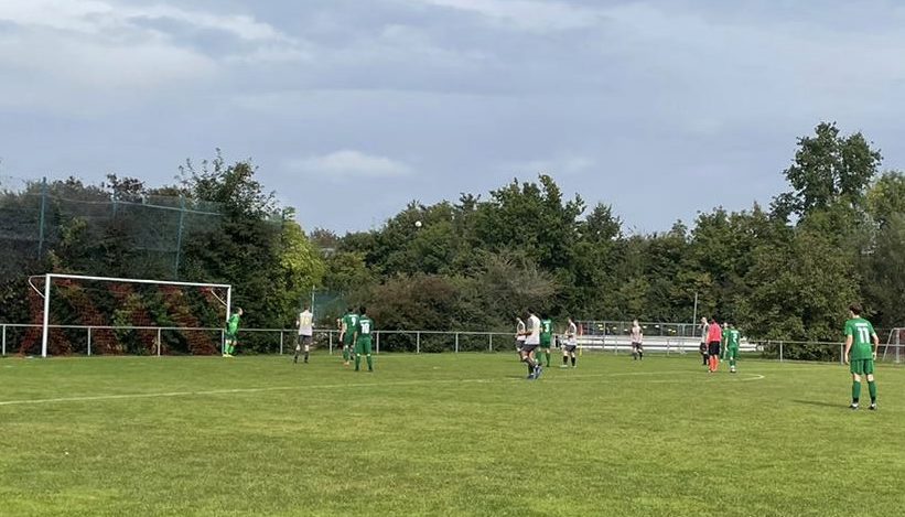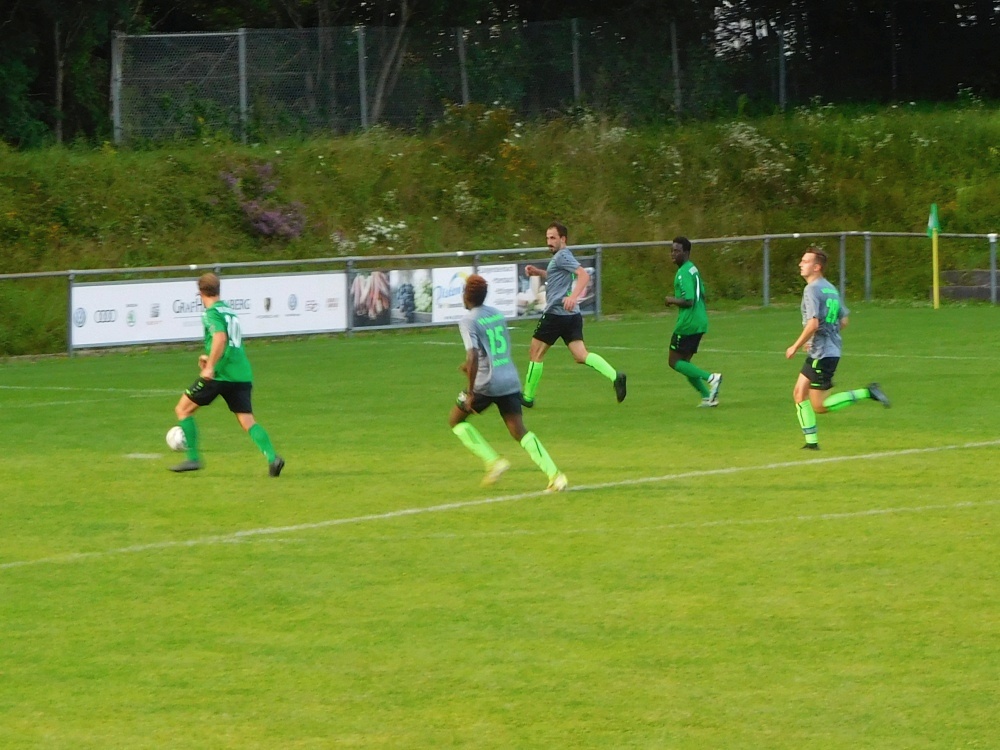 Die durch einige Verletzte und zahlreiche Urlauber dezimierten Grünschwarzen übernahmen von Anfang an das Kommando und spielten sich in der Hälfte des Gegners fest. Nachdem gleich in der Anfangsphase zwei vielversprechende Möglichkeiten vertändelt worden waren, klappte es im dritten Anlauf: eine äußerst sehenswerte Kurzpasskombination an der Strafraumgrenze hätte mehrfach abgeschlossen werden können, die Gäste blieben aber ununterbrochen in Ballbesitz und vollstreckten schließlich doch noch in Person ihres Zehners.