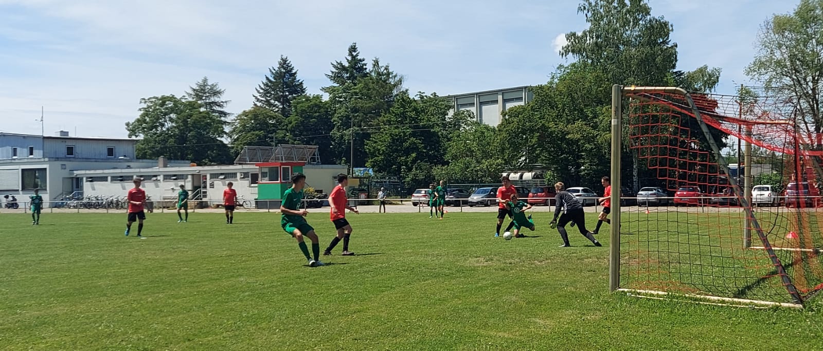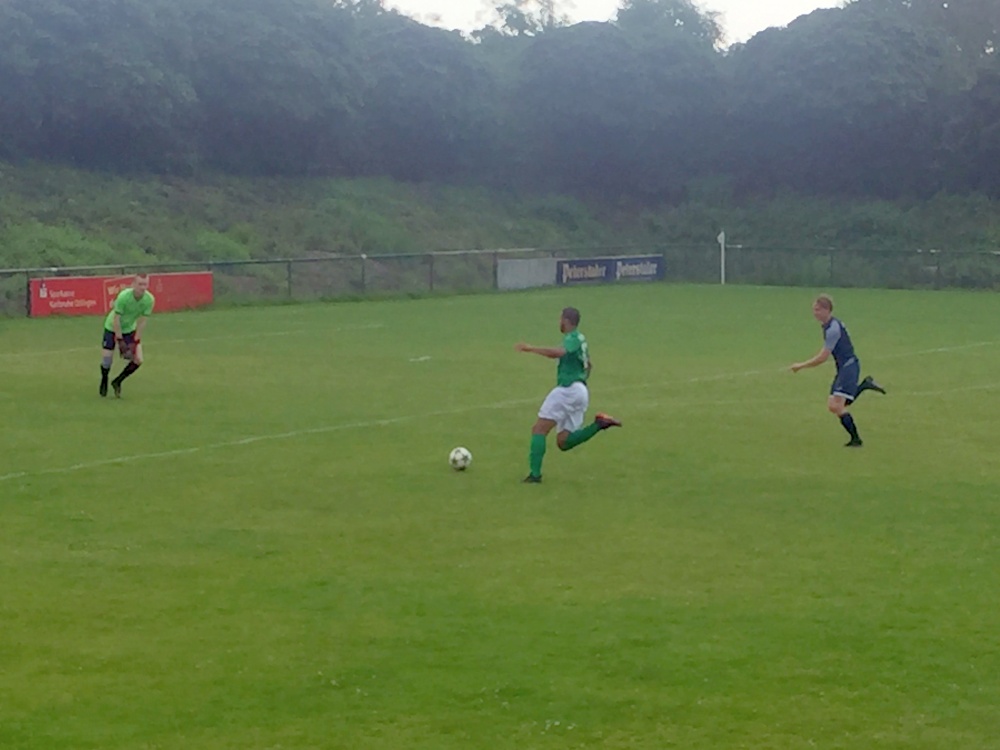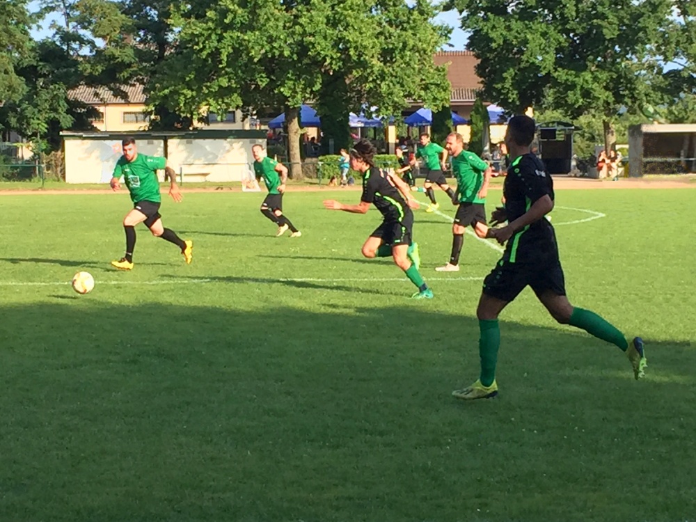 Die Truppe des Trainergespanns Becker/Reich tat sich zu Beginn schwer. Gegen überaus robuste Grünwinkler fand man zunächst keinen rechten Zugriff aufs Match; dass auf dem holprigen Rasen nahezu jeder Ball versprang, tat sein Übriges. So wurde man bereits nach fünf Minuten richtig kalt erwischt – mit einem langen Ball auf der aus Angreifersicht rechten Seite wurde die Abwehr überraschend einfach ausgehebelt, der in dieser Situation dann nicht ganz optimal postierte Keeper machte sich vergeblich lang, Grünwinkel führte 1:0.