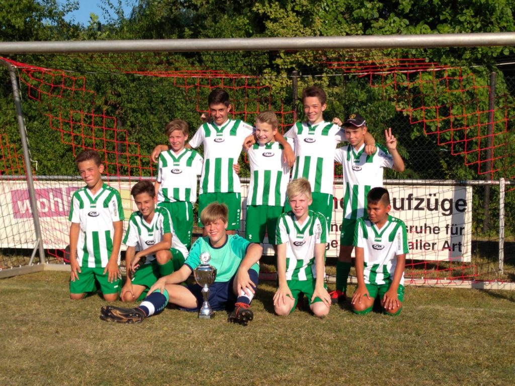 Eine Woche nach dem Turniersieg in Bulach (Foto unten) sicherte sich die D1 den Siegerpokal auch beim Heimturnier des SVK Beiertheim vor dem FV Bad Rotenfels und Post Südstadt Karlsruhe. Im Turniermodus jeder gegen jeden setzte sich der Gastgeber in fairen und spannenden Spielen am Ende mit fünf Siegen und einem Unentschieden durch. Die zweite Mannschaft beendete das Turnier auf dem 6. Platz.