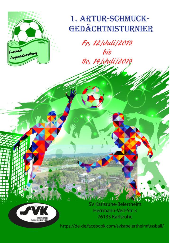 1. ARTUR-SCHMUCK-Gedächtnisturnier vom 12. bis 14. Juli 2019 – Fussball Jugendabteilung Termin Details Datum: 29. Juni 2019 9:00 – 10:00 Terminkategorien: Allgemein, Fussball