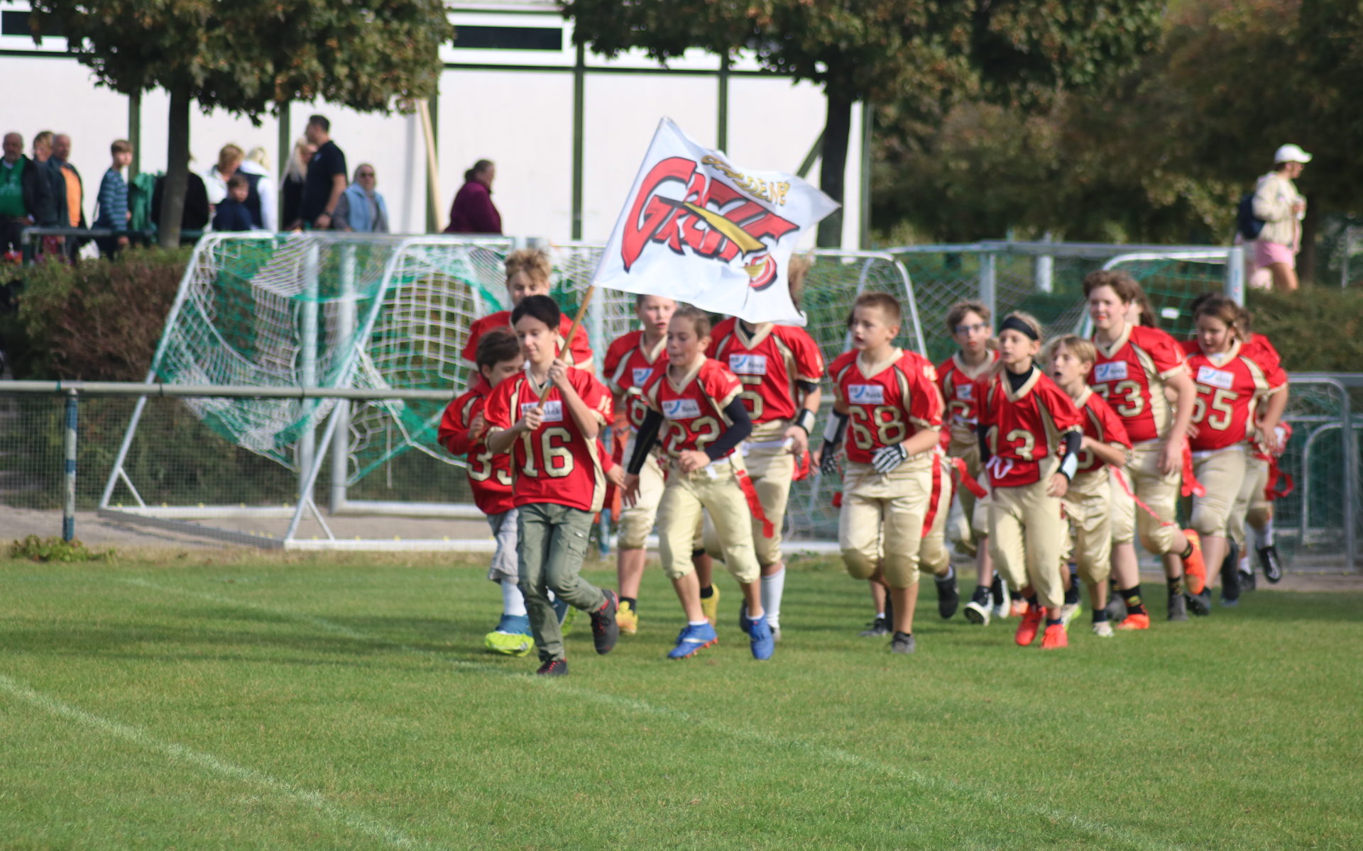 Greifs-Fahne und das Spiel gegen die Pforzheimer Wilddogs konnte pünktlich um 11 Uhr