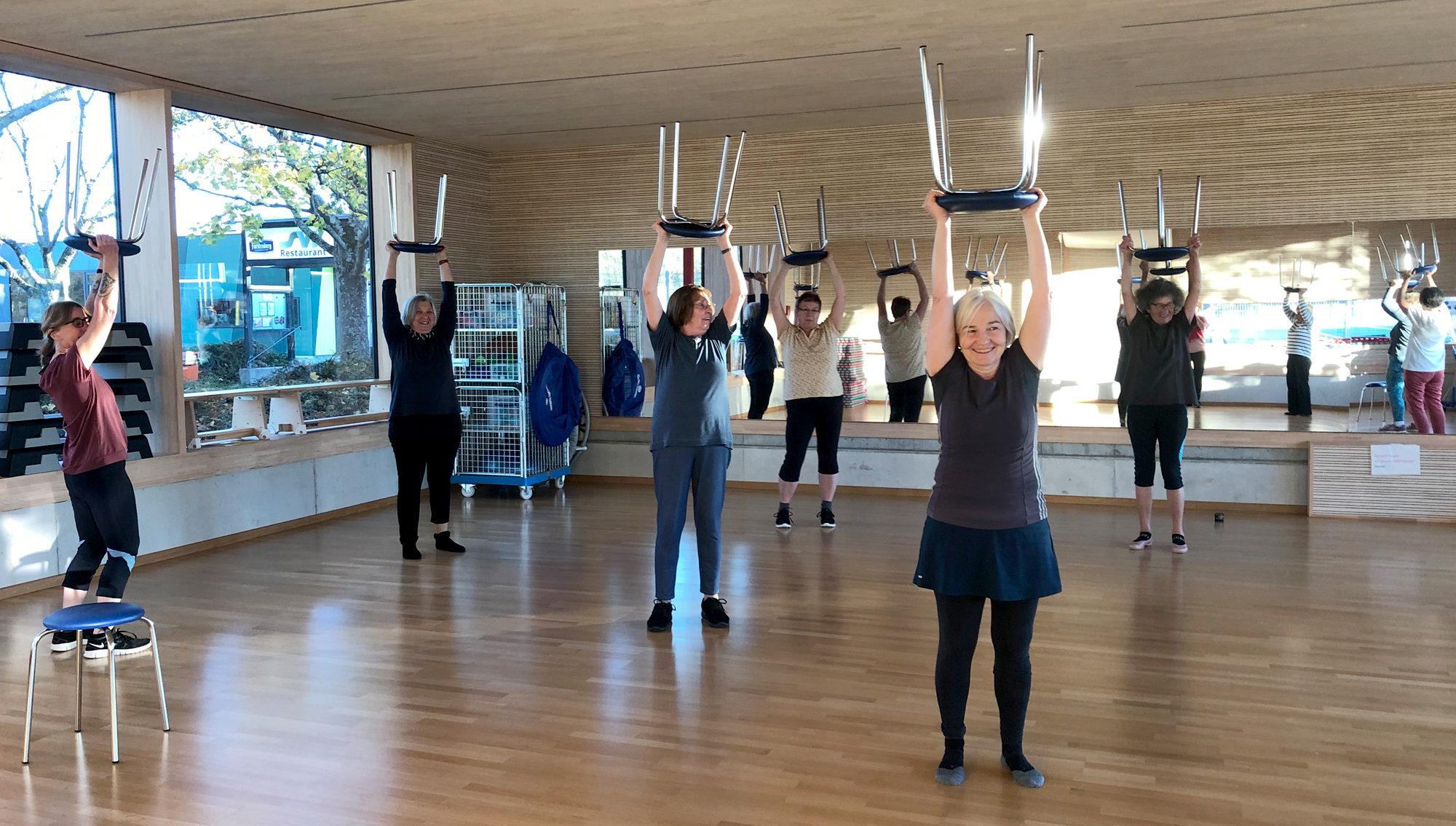 Wir trainieren für Aufbau und Erhalt der Muskulatur, dehnen uns und kümmern uns um Erhalt und Förderung von Gleichgewicht und Beweglichkeit. Ein sanftes Training für den ganzen Körper erwartet dich – mal in Bewegung, mal zu Musik, mal im Stehen oder auch auf Matte oder Stuhl.