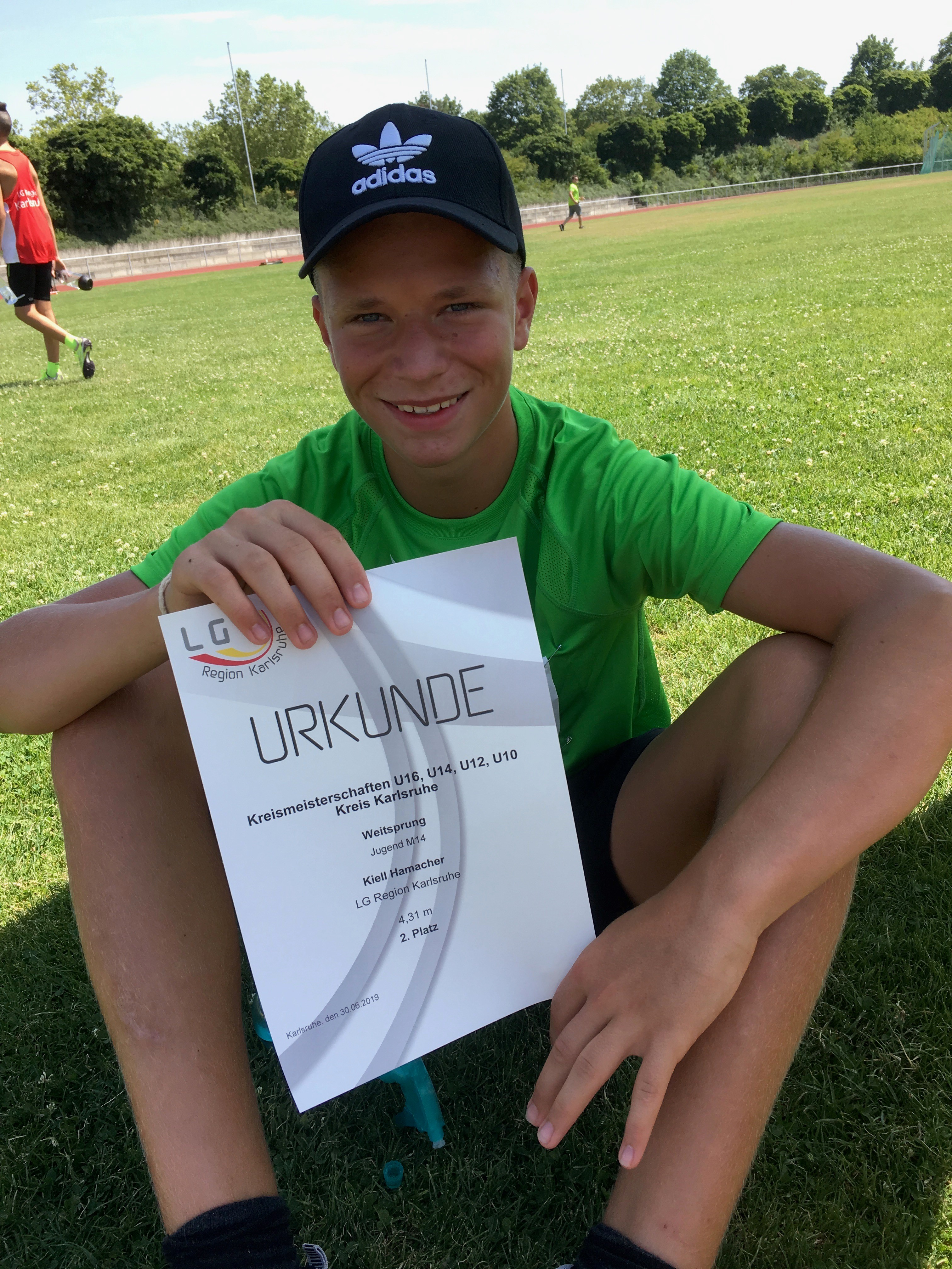 Bei den Jungs ging Alexander an den Start über die 100m und er nahm ebenfalls am Weitsprung teil. Er und Johanna haben sich für die Teilnahme zum Vorentscheid der DJMM qualifiziert, welche am 24.07 in Karlsruhe ausgetragen werden. Glückwunsch hierzu!