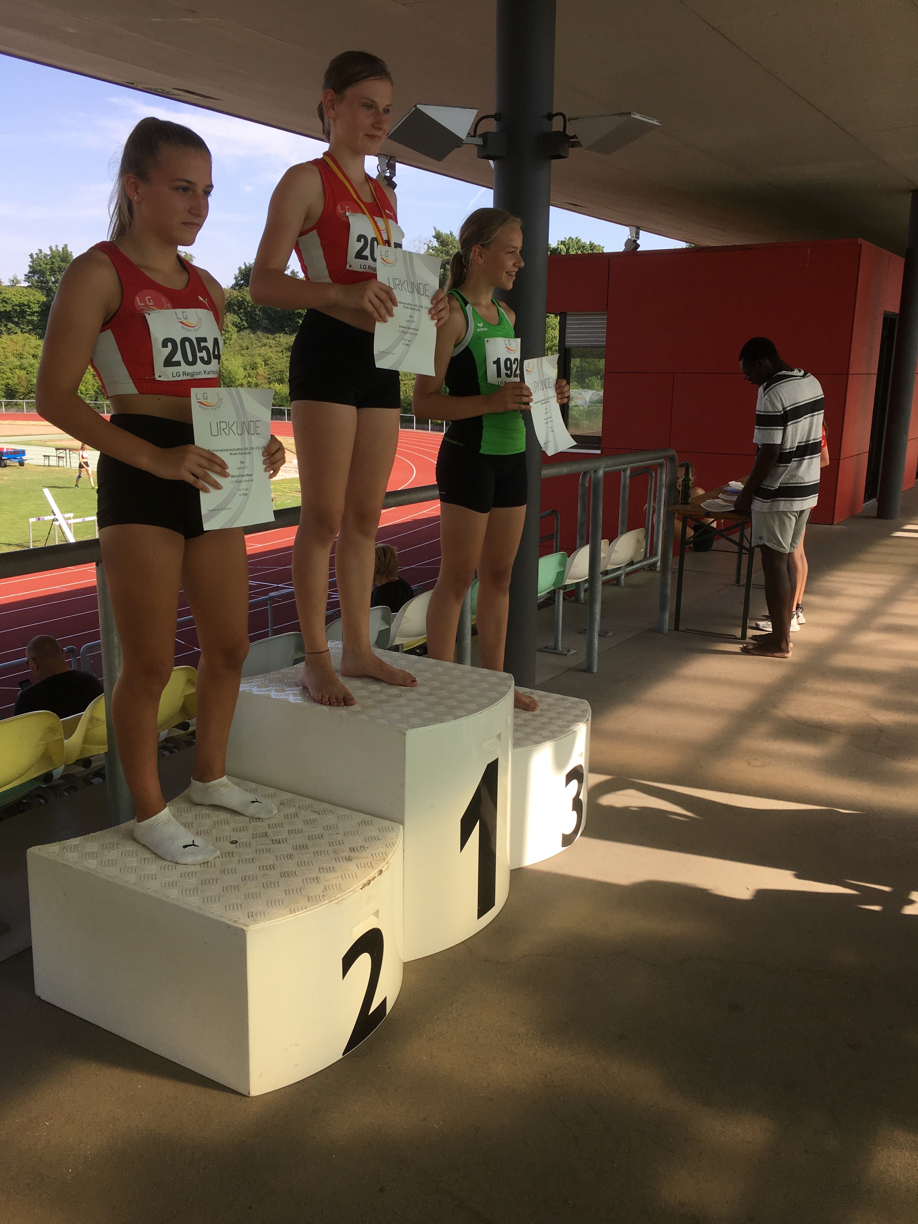 Julia Dieck sprang an diesem Tag aufs Treppchen und konnte sich so den Kreismeistertitel im Weitsprung ergattern. Lora lief die 800m gegen Ende des heißen Tages. Sie ist mutig angegangen und wurde am Ende mit einer Zeit von 2:48 Minuten belohnt.