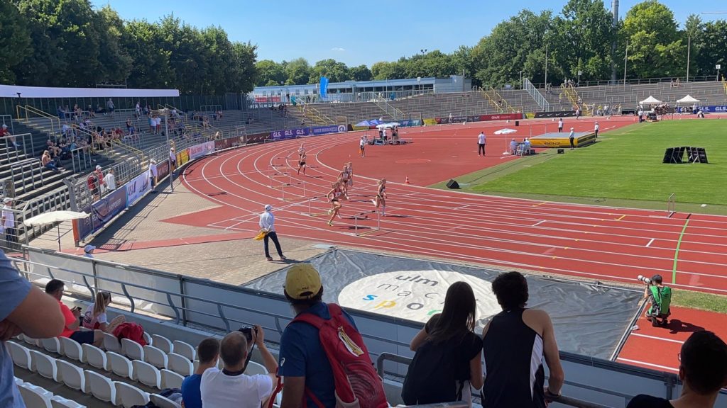 Nach einem weiteren Trainingsblock war es endlich soweit, am 15.-17.07 standen in Ulm die deutschen Jugendmeisterschaften an. Bereits am Freitagvormittag machte sich das Team der LG Region Karlsruhe, darunter auch ich, auf den Weg nach Ulm ins Donaustadion. Mein Start über 400m Hürden war am Samstagmorgen. In einem starken Teilnehmerfeld konnte ich meinen Startplatz verteidigen. Auch wenn ich mit dem technischen Verlauf meines Rennens eher unzufrieden war habe ich bei meinen zweiten deutschen Einzel-Meisterschaften viele Erfahrungen sammeln können.
