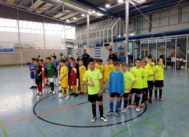 Während man im ersten Spiel noch zeigte, dass man in der Lage ist Tore zu schießen, gelang in den darauf folgenden Begegnungen kein einziger Treffer, was Platz 3 in der Gruppenwertung bedeutete. Dieser berechtigte zu einem Qualifikationsspiel zum Viertelfinale gegen die erste Mannschaft des Gastgebers CFR Pforzheim, die ebenfalls in ihrer Gruppe den dritten Rang erreicht hatte. Hatte man bisher sowohl taktisch, als auch läuferisch und spielerisch nicht überzeugen können, versuchten unsere Jungs in diesem Spiel all dies vergessen zu machen. In einem überlegen geführten Spiel ließ man keinen Zweifel aufkommen, wer das Spielfeld als Sieger verlassen würde und setzte dies mit einem klaren 4:0 auch um, womit man sich für das Viertelfinale qualifiziert hatte. Ein schwerer Brocken wartete da, hieß doch der Gegner FSV 08 Bissingen, der seine eigene Gruppe souverän gewonnen hatte und ausgeruht ins Viertelfinalspiel gehen konnte. Überraschend klar beherrschte man das Spielgeschehen und dominierte die Partie. So führte man bis weit in die zweite Hälfte der Partie mit 2:0. Durch eine Unachtsamkeit unsererseits gelang Bissingen völlig unerwartet der Anschlusstreffer und zu allem Unglück erhielt man kurz darauf auch noch einen 9 – Meter gegen sich. Bissingen konnte ausgleichen und drückte nun mächtig gegen unser Tor. Durch einen schnellen Gegenangriff schafften wir es aber doch noch zum viel umjubelten Siegtreffer einzuschießen und man zog nicht unverdient, aber unerwartet ins Halbfinale ein. Natürlich hatte man nun Blut geleckt und außerdem sollte der Gegner erneut die Mannschaft aus Eislingen sein, die die Vorrundengruppe souverän gewonnen und unserem Team dabei eine schmerzhafte Niederlage zugefügt hatte. Doch leider offenbarte das Halbfinale einen Klassenunterschied zu unseren Ungunsten. Niemals bekam man Zugriff aufs Spiel, lief den Gegenspielern hinterher und langsam machten sich zusätzlich auch konditionelle Defizite bemerkbar. Mit einem deutlichen Ergebnis wurden wir, auch verdientermaßen, ins Spiel um Platz 3 geschickt.