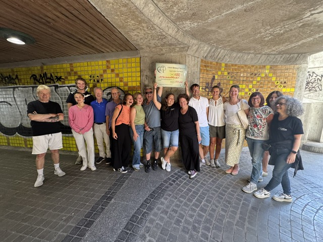 Am 18.07.2025 übergab eine kleine Delegation der Tennisabteilung den „Scheck“, der sich aus dem Erlös des Herz-Riesling-Cups ergeben hatte. An Christi Himmelfahrt hatten sich über 40 Spieler/innen zu einem Charity-Turnier zugunsten des Herzprojekts Karlsruhe e.V. auf unserer Anlage getroffen. Es handelt sich hierbei um einen Verein, der einmal wöchentlich in der Unterführung am Kühlen Krug bedürftige Menschen kostenlos mit Lebensmitteln und Hygieneartikeln versorg.