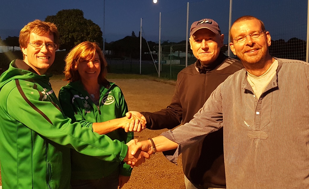 Zum Beginn hieß für die 13 anwesenden Frauen und Männer erstmal Wasser schippen. Trotzdem konnten die Spiele pünktlich beginnen.Alle 5 Spielrunden waren sehr ausgeglichen. Zum ersten mal gelang es niemand 5 Siegen zu erringen.  Zum Schluss waren wieder mal nur ein oder 2 Kugeln Differenz bei der Endabrechnung zum Finaleinzug entscheidend. Nach dem Losen ergaben sich folgende Finalpaarungen: