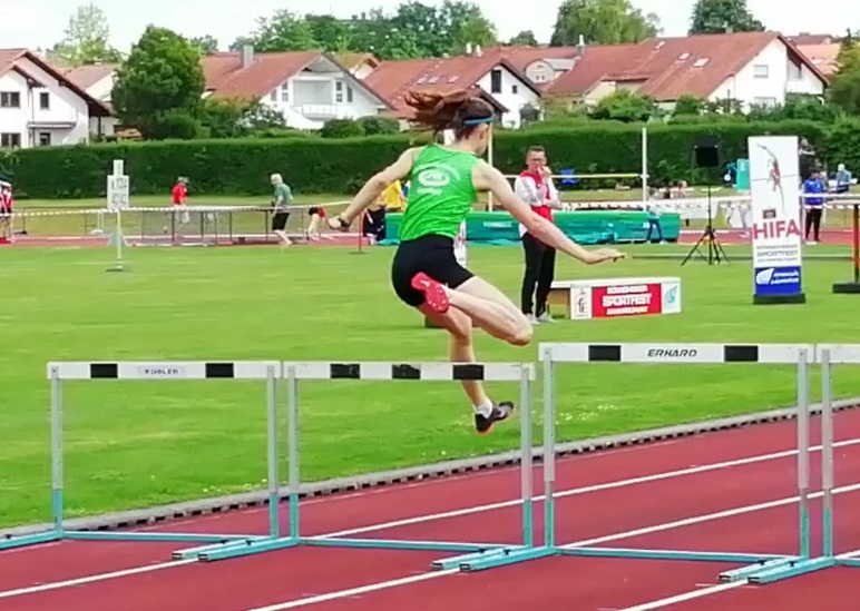 Beim Sportfest an Himmelfahrt am 30.05 in Bönnigheim startete ich das erste Mal über die 300 Meter Hürden in der U16 und kam mit einer, für meinen ersten Start in dieser Disziplin, guten Zeit von 50,36 Sekunden ins Ziel.