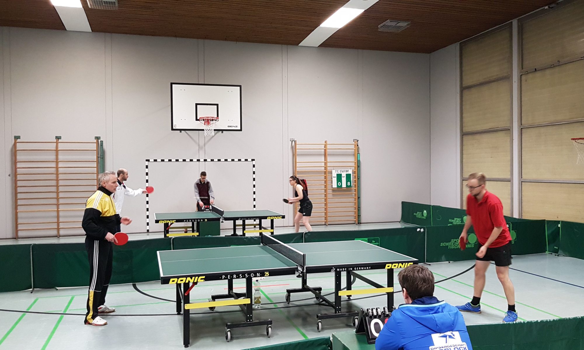 Nachdem Gestern die 2te bereits die Relegation nach oben besiegelt hatte, ging es heute mit der 3ten nach Stutensee-Staffort. Ersatzverstärkt mit Thomas und mir. Das warf bereits Rätsel in den Doppeln auf, die wir aber schnell lösten.
